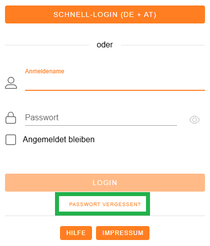 Hinweis: Der Schnell-Login (für DE + AT) funktioniert ausschließlich über den Button „Schnell-Login (DE + AT)“ NICHT über die reguläre Login Maske. Im Folgenden zeigen wir Dir Schritt für Schritt, wie Du Dich über die reguläre Login-Maske anmeldest.